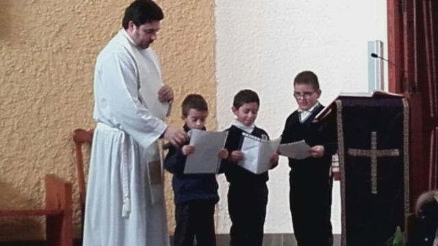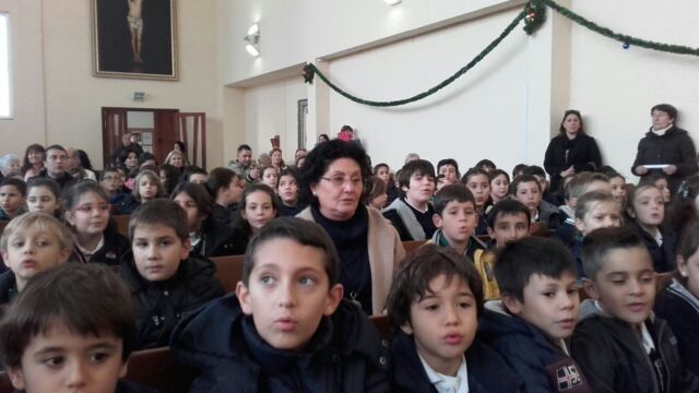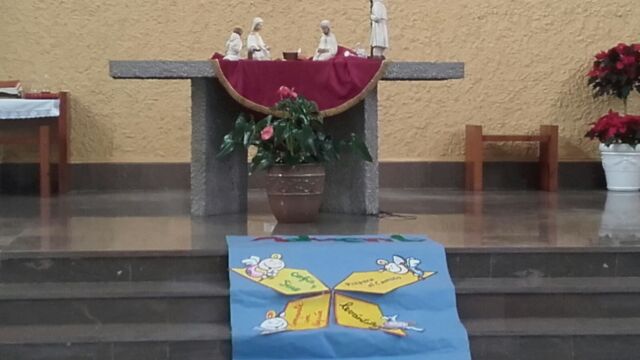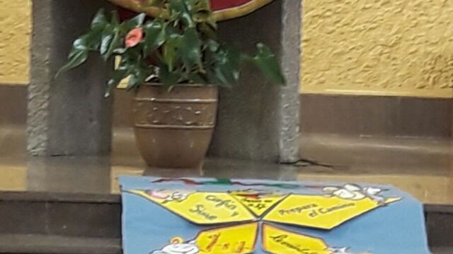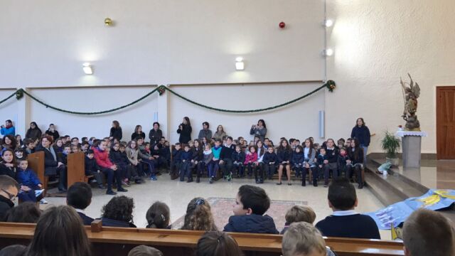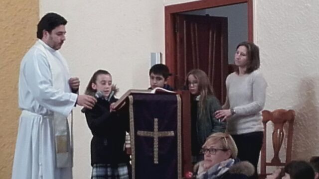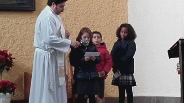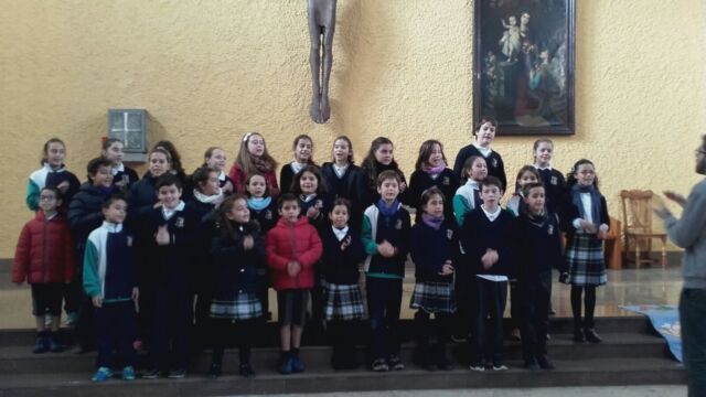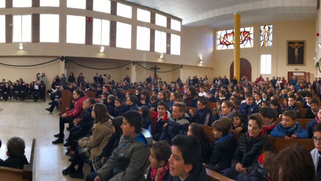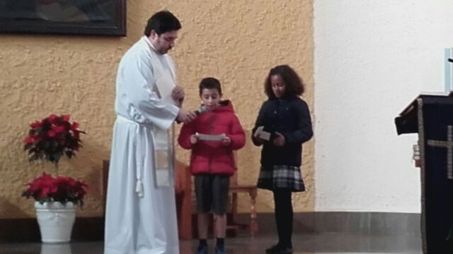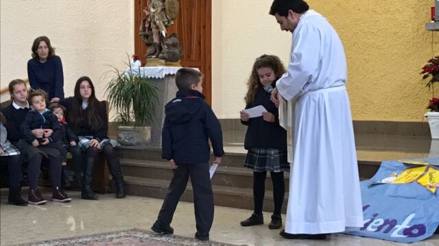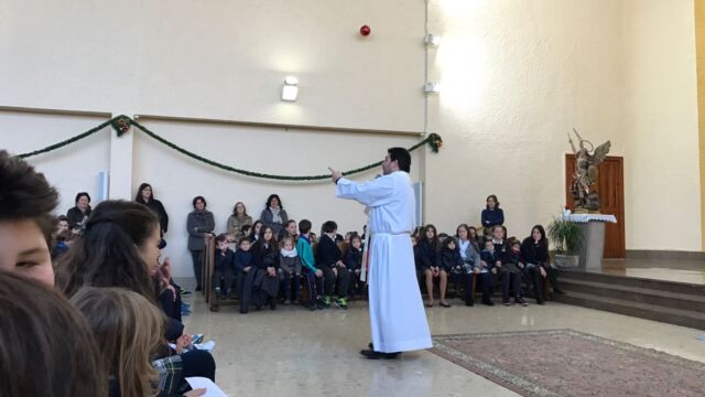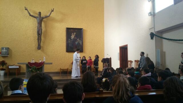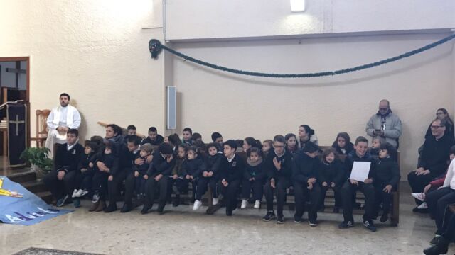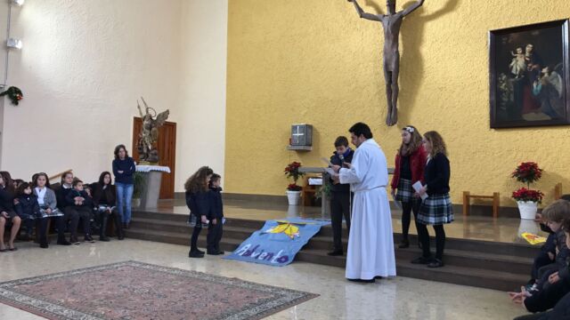 La Iglesia de San Miguel fue el lugar elegido para nuestra celebración: un momento de compartir, de reflexionar y de sentirnos protagonistas. Fue también el momento de concluir la dinámica del adviento que durante cuatro semanas nos ha reunido en el patio. Palabras de bienvenida, el evangelio y palabras de agradecimiento es lo que vivimos todos juntos, pero sobretodo la melodía de la alegría de la Navidad: los villancicos, que cantamos todos juntos en varios momentos. Todo esto acompañado por los familiares que pudieron estar en esta celebración, a los que damos las gracias por acompañarnos en momentos tan importantes de nuestra formación como personas y como cristianos.