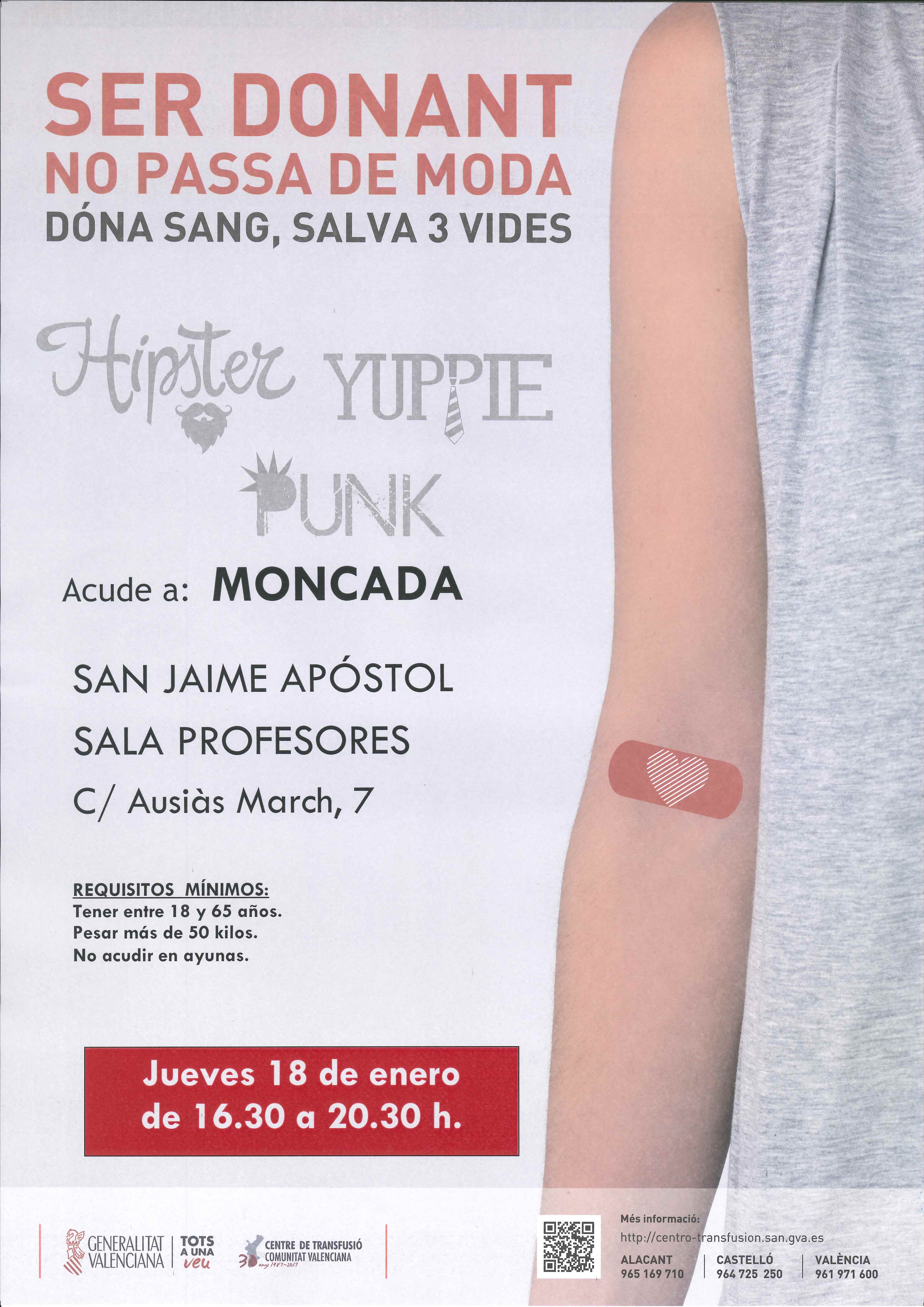 Anima´t a donar sang el próxim Dijous 18 de Gener, a partir de las 16.30 fins les 20.30 a l´edifici de Cicles.