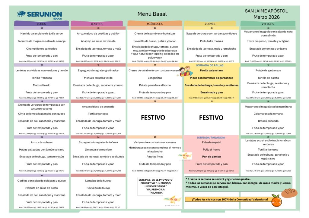 COLEGIO SAN JAIME APOSTOL – MENU BASAL -MARZO-2026