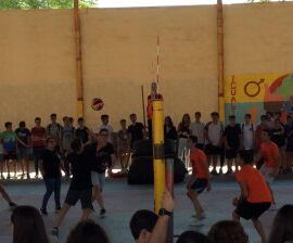 Durant l’últim trimestre, i organitzat pel Departament d’Educació Física, s’ha realitzat una lliga de vòlei durant els patis i els divendres per la vesprada a extraescolars. Han participat 10 equips mixtes amb alumnes de 1r de Batxillerat i ESO. La final ha sigut una sorpresa entre dos equips de 4t d’ESO. La participació i el comportament ha estat excepcional i el campionat s’ha convertit en un al·licient per als patis. L’expectació també ha acompanyat. En total han participat quasi 100 alumnes. El pròxim any, més i millor.