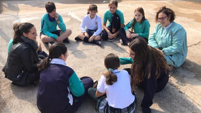 Cada miércoles, de 12:30 a 13:30, más de 30 alumnos y alumnas de sexto de primaria nos reunimos en el patio con algunos profesores acompañantes y con D. Juan para hacer dinámicas y tener un momento de oración todos juntos. Hace ya 4 años que estos grupos están en marcha y cada curso somos más los que nos animamos a formar parte de esta gran aventura. Pero esto no se queda en primaria, sino que el curso que viene continúa en la ESO.