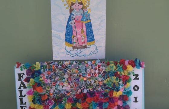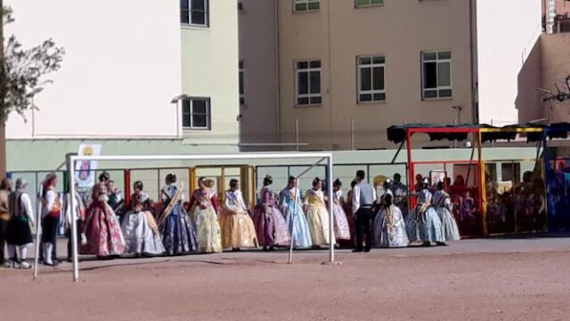 La jornada escolar comença amb la visita a la falla, la confecció de l’escut i els concursos per classe d’esbossos fallers, mentrestant, primer i segon fan la seua ofrena a la Verge dels Desemparats.