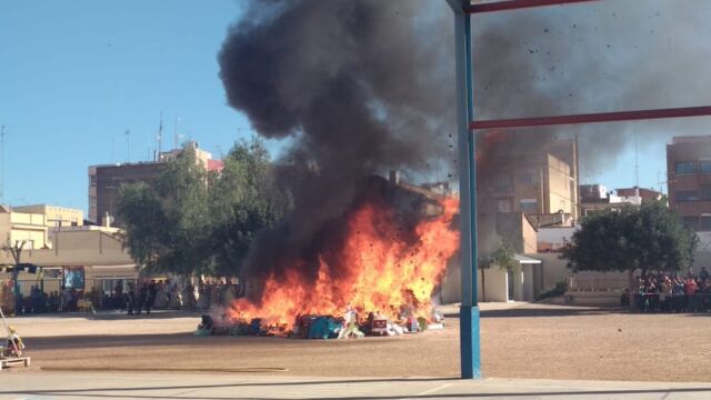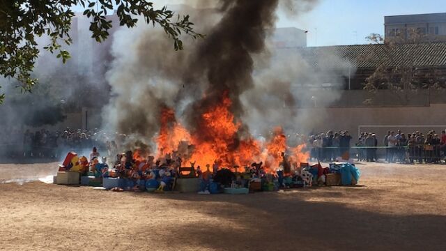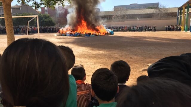 La vesprada està dedicada a la cremàde la falla: alumnes, mestres, membres de l’AMPA i familiars han pogut gaudir de nou de la mascletà, un xicotet castell de focs artificials a càrrec de CABALLER FX i la cremàde la falla.