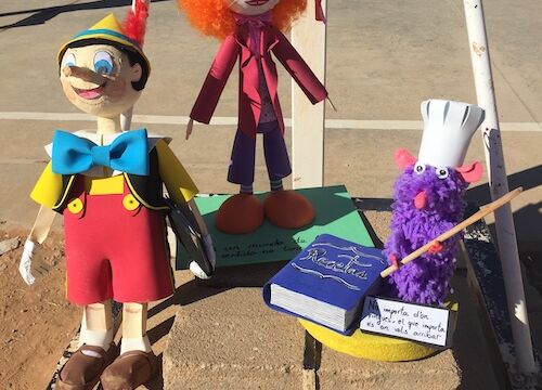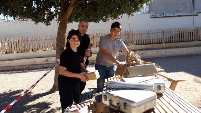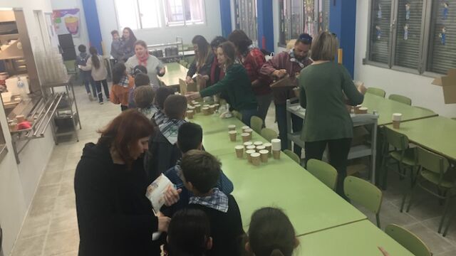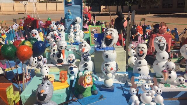 De bon matí, els mestres d’infantil i primària i el personal de serveis ho deixen tot a punt per a poder començar les activitats: la plantà de la falla, l’estructura per a l’ofrena i un boníssim xocolate amb bunyols per a agafar forces.