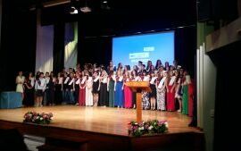 I així continuà la festa presentada per alguns dels alumnes de 2n de Batxillerat, amb unes inspiradores paraules de Javier Grande, el nostre titular , i de Javier Andrés, president de l’AMPA; un esquetx molt especial fet per alguns alumnes de 2n de Batxillerat;l’entrega de diplomes als alumnes de l’Aula d’Excel·lència de 1r i 2n de Batxillerat per part d’Ana Romero i Eva Gascó, directora i subdirectora del centre; dos vídeos preparats per alumnes i professor, en els quals vam poder recórrer el pas dels graduats per totes les etapes de la seua vida i veure com són ara.