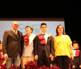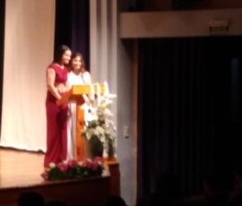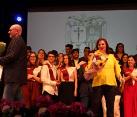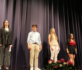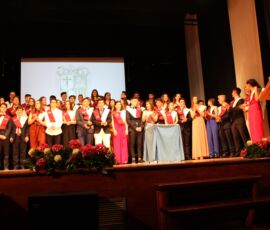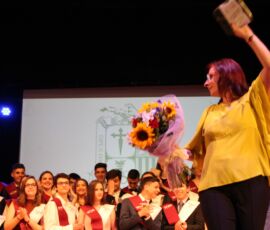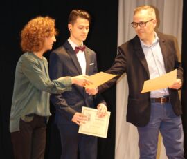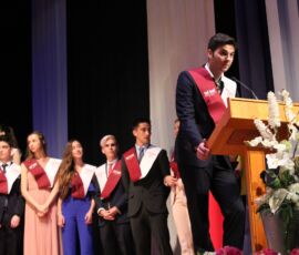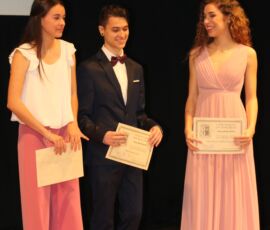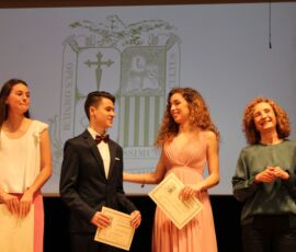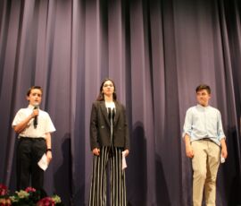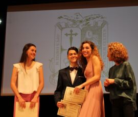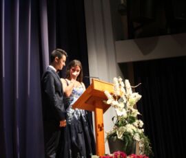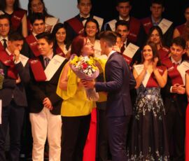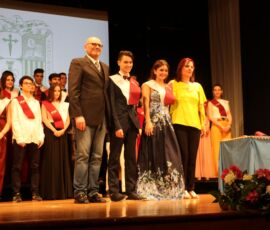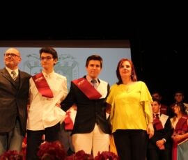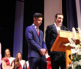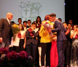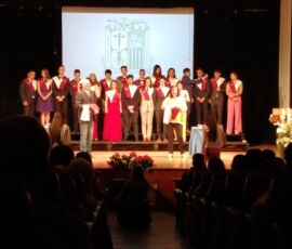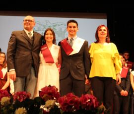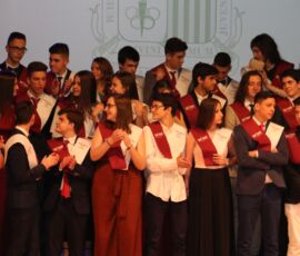 I així continuà la festa presentada per alguns dels alumnes de 2n de Batxillerat, amb unes inspiradores paraules de Javier Grande, el nostre titular , i de Cristóbal Villalta, representant de l’AMPA; un esquetx musical molt especial fet per alguns alumnes de 2n de Batxillerat; l’entrega de diplomes als alumnes de l’Aula d’Excel·lència de 1r i 2n de Batxillerat per part d’Ana Romero i Vicent Chover; tres vídeos preparats per alumnes, en els quals vam poder recórrer el pas dels graduats per totes les etapes de la seua vida i veure com són ara.