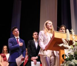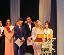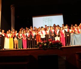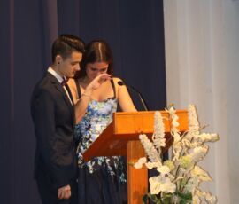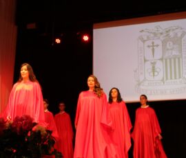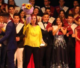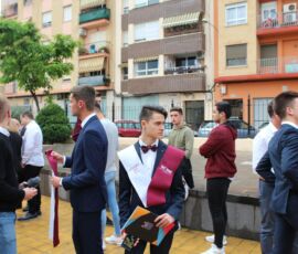 Finalment arribà el moment de la graduació. Després de veure un vídeo amb la transformació de cada graduat de xiquets a a jóvens, els alumnes pujaren de dos en dos i els tutors, Mili Granell i Josep Chiralt, els posaven les beques. L’acte finalitza amb dos moments molt especials, la interpretació musical de Nuria Mellado i l’emotiu discurs d’acomiadament dels delegats dels alumnes de 2n de Batxillerat.