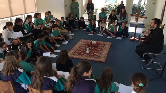 Cada miércoles, de 12:30 a 13:30, más de 30 alumnos y alumnas de sexto de primaria nos reunimos en el patio con algunos profesores acompañantes y con D. Juan para hacer dinámicas y tener un momento de oración todos juntos. Hace ya 4 años que estos grupos están en marcha y cada curso somos más los que nos animamos a formar parte de esta gran aventura. Pero esto no se queda en primaria, sino que el curso que viene continúa en la ESO.