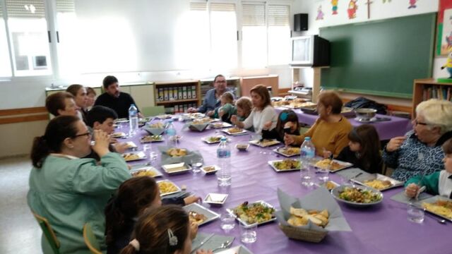 Ahir vam tindre una visita molt especial en el col·le. Han vingut els nostres avis a menjar amb nosaltres… i no solament això, sinó que ens han preparat el menú: puré de carabasseta, mandonguilles en salsa amb creïlles i bescuit de coco.