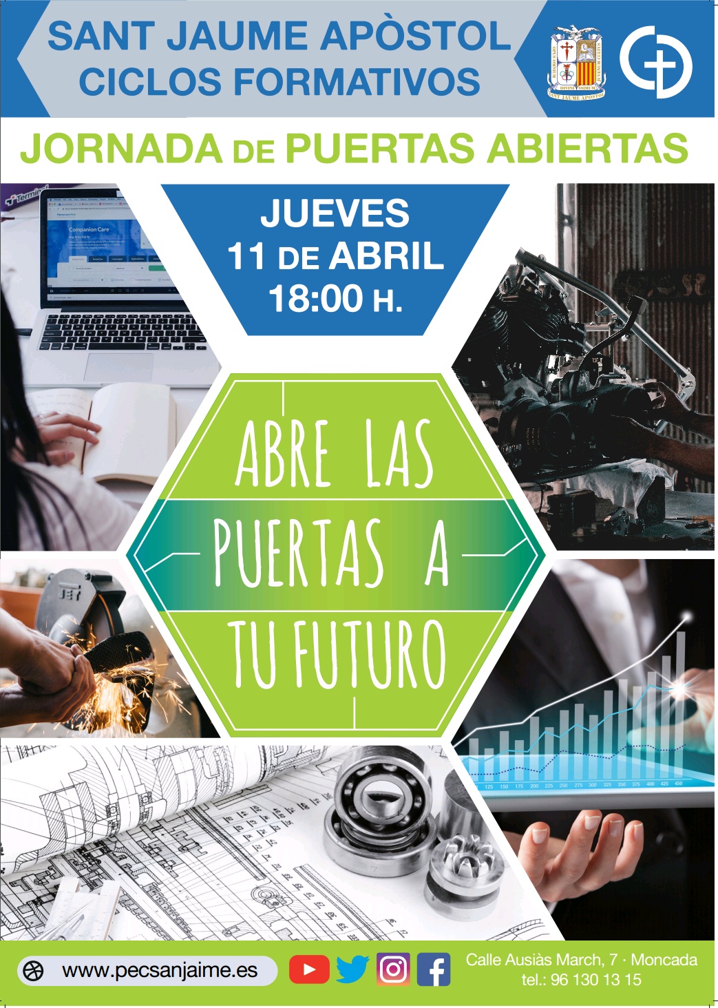Os invitamos a la jornada de puertas abiertas de Ciclos Formativos que celebraremos el día 11 de abril a las 18h, en el edificio de la C/ Ausiàs March.
