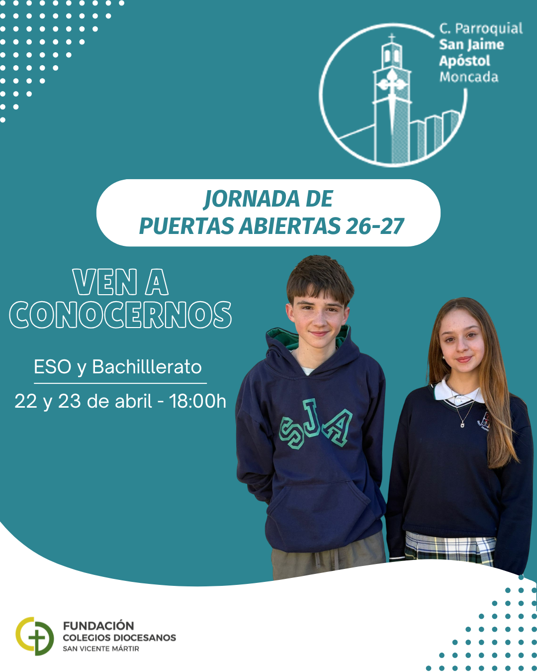 El Colegio Parroquial San Jaime Apóstol de Moncada, celebra todos los años unas Jornada de Puertas Abiertas con el fin de que las familias podáis conocer, de primera mano, nuestro Proyecto Educativo, las instalaciones y preguntar lo que necesitéis conocer de nuestro Colegio.