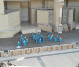 El matí ha començat a les 10h al teatre romà de Sagunt. Allí han vist la representació d’ Antígona de Sófocles dins del XXII Festival de Teatro Grecolatino de Sagunto. La posada en escena ha sigut per part de la Companyia Komos, integrada per actors jóvens. Després del teatre s’ han dividit en grups per a realitzar la resta d’activitats: Visita guiada als jaciments arqueològics Via Porcini i la Domus dels peixos,on el guia els ha explicat la calçada romana, han vist cases i temples romans, i també han fet una ruta per la juderia de la ciutat de Sagunt.