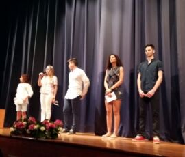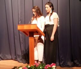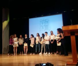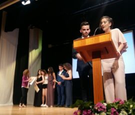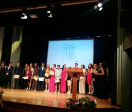 I així continuà la festa presentada per alguns dels alumnes de 2n de Batxillerat, amb unes inspiradores paraules de Javier Grande, el nostre titular , i de Javier Andrés, president de l’AMPA; un esquetx molt especial fet per alguns alumnes de 2n de Batxillerat;l’entrega de diplomes als alumnes de l’Aula d’Excel·lència de 1r i 2n de Batxillerat per part d’Ana Romero i Eva Gascó, directora i subdirectora del centre; dos vídeos preparats per alumnes i professor, en els quals vam poder recórrer el pas dels graduats per totes les etapes de la seua vida i veure com són ara.