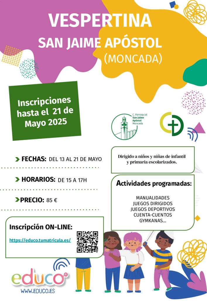 Las inscripciones se realizarán hasta el 21 de mayo a través del siguiente formulario: https://educo.tumatricula.es (en nombre de la actividad, indicar “Vespertina”).