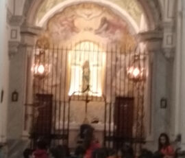 Arribàrem vora les 10.00h. a Alfafara i des d’allí iniciàrem la marxa cap al santuari. Durant el camí hi hagué una activitat pastoral que ajudà els alumnes a reflexionar, conversar i conviure. Una vegada dalt visitàrem el Santuari i la Verge.