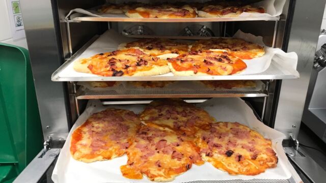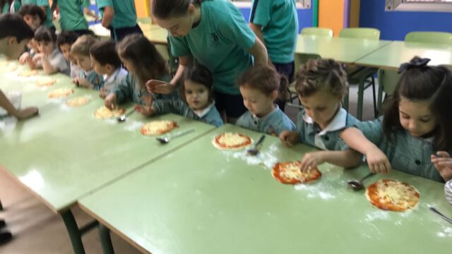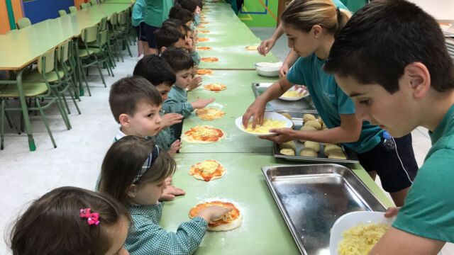 Hemos ido a la cocina y Estela nos ha enseñado cómo preparar unas riquísimas pizzas. Pero claro esta… nosotros solos hubiéramos hecho un desastre, menos mal que algunos compañeros de sexto nos han echado una mano.